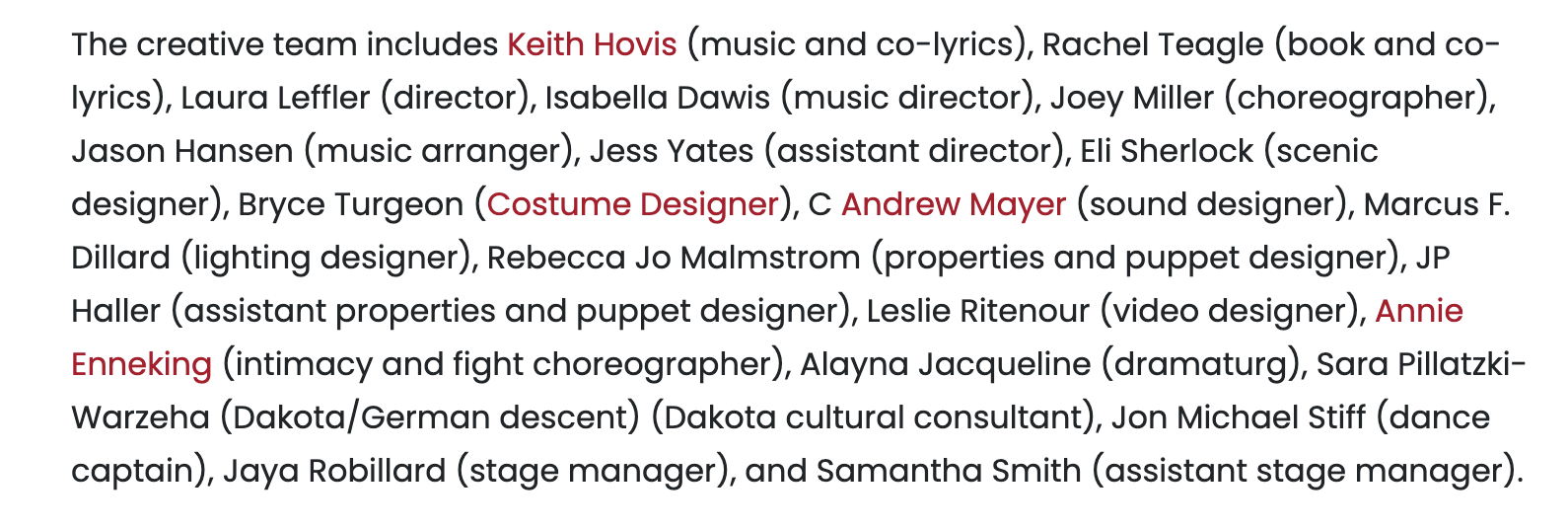 “…I reserve my highest praise for music director (and pianist and conductor) Jason Hansen for helping shape the uniformly outstanding vocal performances, beautifully balanced harmonies and tight-knit sound of the four-piece band. As long as this kind of devotion to polishing the music to a fine sheen holds sway at Latte Da, the future looks bright.”